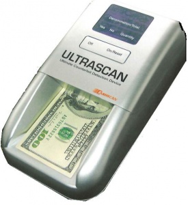 The simple Ultrascan 2600 provides the user with a green light for genuine notes and a redlight with a buzzer to identify possible counterfeit notes. This device identifies authentic or counterfeit currency in less than a second.