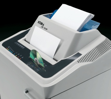 Professional high security touch screen shredder suitable to shred "Classified" and "Top Secret" documents: all controls are activated by simply touching the panel. Kobra 310 TS HD HS-6 AO is approved by the US National Security Agency and NSA EPL Listed. Motor thermal protection: 24-hour continuous duty, powerful 2600 Watt motor without overheating and duty cycle. Kobra 310 TS HD HS-6 AO can shred a paper sheet in about 20,000 0.8 x 5 mm (P-7) micro-chips, which become absolutely unreadable even if special electronic devices are used. The 0.8 x 5 mm cut size exceeds the NSA/CSS Spec. 02-01 National Security Agency requirements. It can shred transparent material too. Carbon hardened cutting knives, heavy-duty chain drive with steel gears, which offer reliability and resistance to wear.