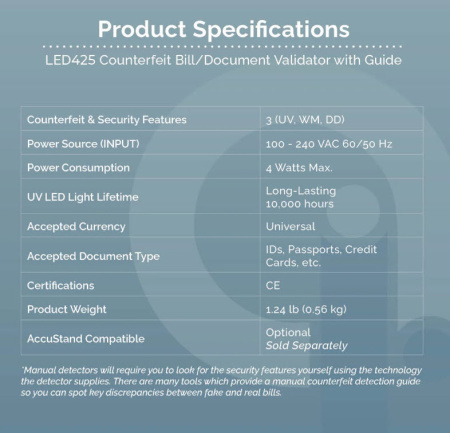 Accubanker LED425 Counterfeit Bill/Document Validator with Guide