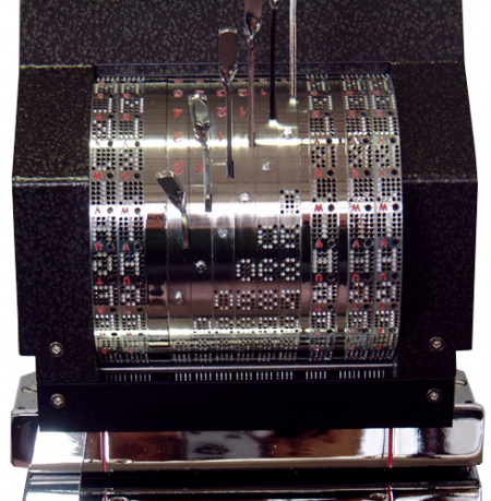 The characters are set either by external fixed levers or by a removable pin, depending on whether the character is a digit or a letter: levers are fitted for numbers, while a pin is used to change letters.