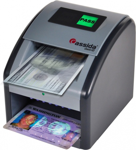 The Cassida Omni-ID combines a powerful automatic counterfeit detector with advanced ultraviolet LED illumination into a single machine that authenticates both US currency and IDs. The Omni-ID gives you confidence and protection, assuring the dollars, identification cards and checks you take are genuine.