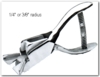The Mieth 413 is a heavy-duty corner rounding punch that can round corners on photos, cards, paper or plastic. Turn a square edge into a smoothly rounded corner with a 3/8 inch radius. This is a custom designed two piece, solid steel, nickel plated corner rounding punch.