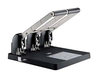 The 953 EX Power Punch is a heavy duty three hole paper punch that will punch three 7 mm or 9/32 inch holes through 150 sheets of 20 lb. paper in one operation. The holes are center spaced 4.25 inches apart.Constructed with steel punch handle and harden steel cutter heads. The base of the 953 hole punch is made of rugged ABS. Includes integrated paper guide and an extra set of punch disc.