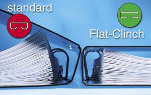 - Staple legs are bent and pressed flat after stapling which provides 30% more binder storage