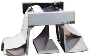 The Martin Yale 950 decollator is the ideal table top decollator for separating 3-part (5-ply) carbon-interleaved, non-glued forms. Efficient and economical, the Martin Yale 950 decollator handles continuous forms weight of 10- to 110-lb paper, from 3 1/2" to 16" wide. A clutch-driven spindle takes the mess out of carbon disposal. Feed speed is fixed at 110 feet-per-minute.