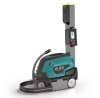 This robotic pallet wrapper is driven by twin independent electric motors powered by self-propelled batteries, which are maintenance-free so that is they need no fill and can be recharged through an onboard power set from a standard 230 V power supply when not in use. The machine is able to wrap at about 60 - 80 EUR pallets of medium height before recharging; it is evident that the number of wrapped pallets depends on the pallet dimensions.