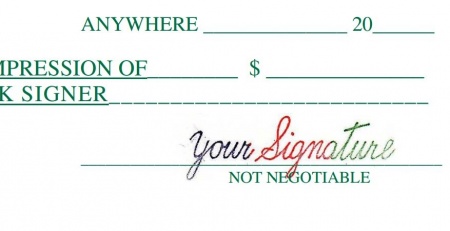 The Widmer S-3 Check Signer is perfect for a small business. Though compact, compared to other Check Signers, the S-3 is very durable with a metal cast construction and secure Dual Lock System. The simple action of inserting the check triggers the signature imprint. Optional tri-color ink ribbons are available for additional security. The purchase price includes a single Signature Plate (Double Signature Plates are available for an additional charge). Additional and Replacement Signature Plates are also available. A signature form will be sent to the customer upon purchase and the original needs to be returned. This form will be used to create a customized Signature Plate.