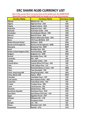 **CHECK BELOW FOR ERC SHARK N100 ADDITIONAL CURRENCY LIST**